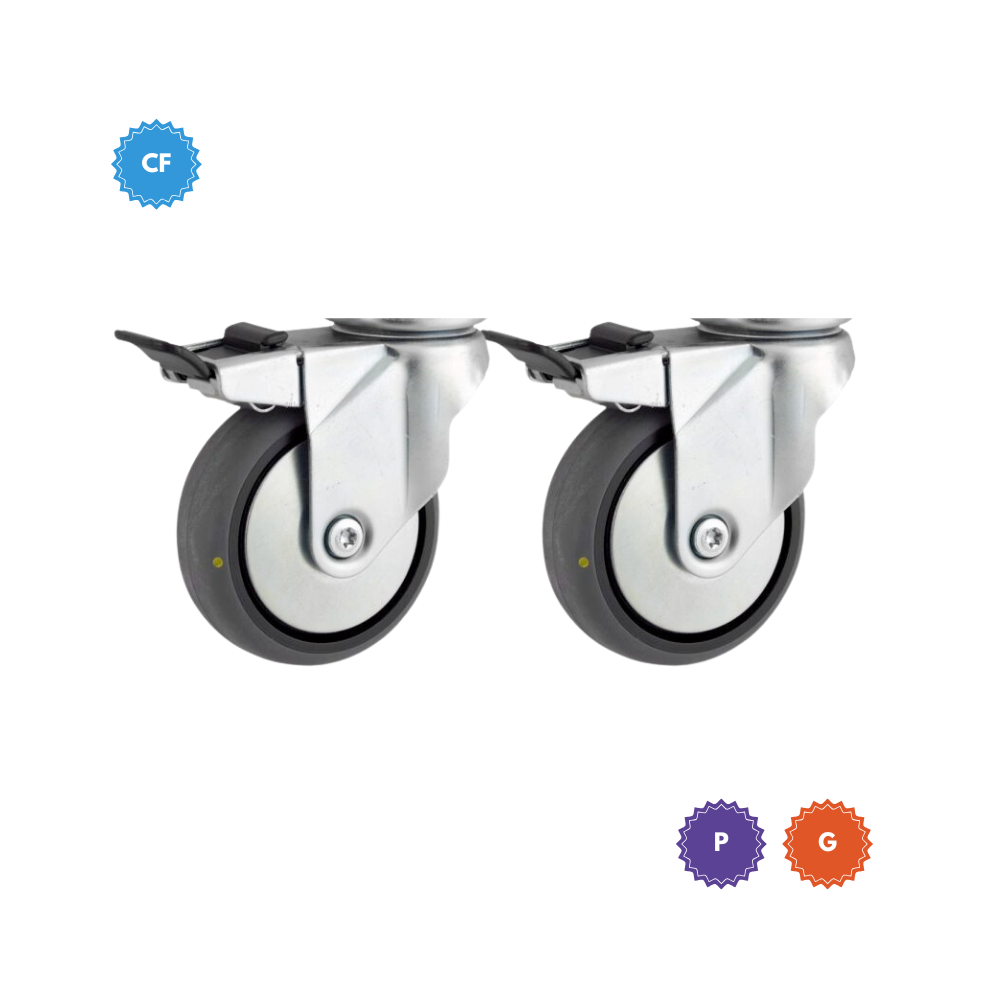 Juego de 4 ruedas con freno, diseñado para mover fácilmente las Shanti Boxes y asegurar su estabilidad al detenerlas.